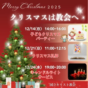 『光は闇の中に輝いている。闇はこれに打ち勝たなかった。』聖書 教会でしか味わうことのできない特別なクリスマスを一緒に過ごしませんか?初めての方も参加しやすい会となっています。全ての方にとって特別で幸せなクリスマスになりま […]