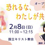 2026年2月7日 / 最終更新日 : 2026年2月7日 kcc@sakuraadmin2026年2月 オープンチャーチ 今回のオープンチャーチのテーマは『恐れるな、わたしが共にいる』です。東京キリスト教大学講師の高見澤 英子師が、わかりやすく聖書のお話をしてくださいます。